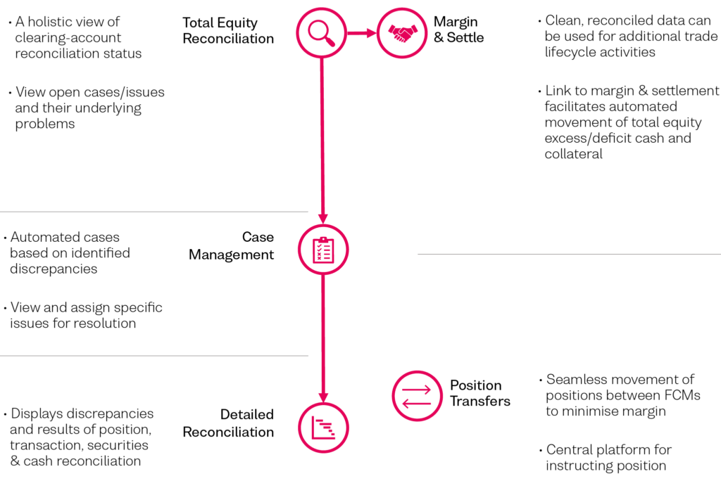 Our automated ETD solution supports reconciliation, dispute management, margin and settlement, all in one place, giving you a single comprehensive view of your clearing accounts. Instantly identify discrepancies, review open cases and track outstanding exceptions, with easy drill-down capabilities to understand underlying problems. We ensure data consistency, conduct thorough position and trade reconciliations, and offer a flexible case management system.